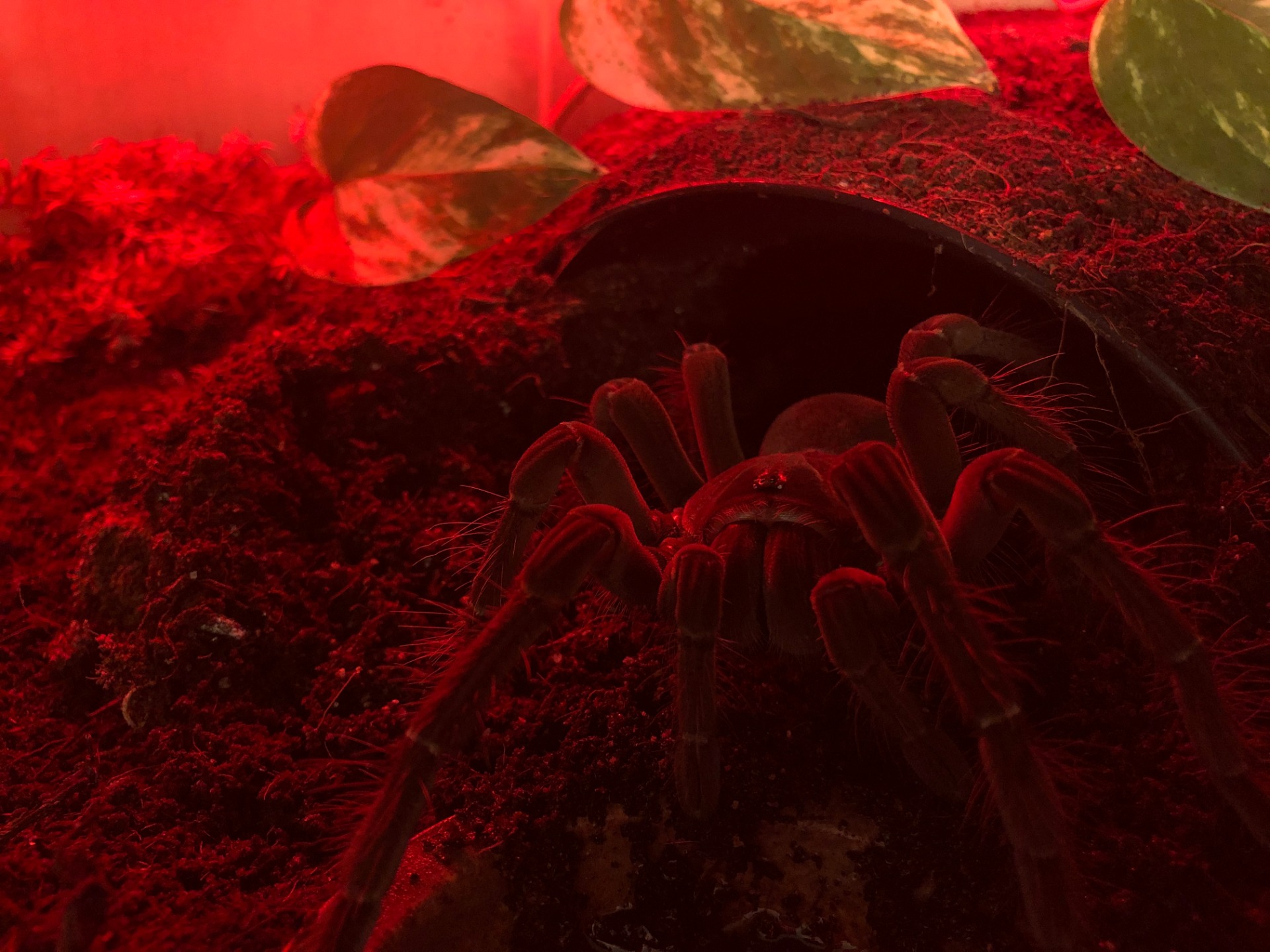 Chovu pavouků se věnuji již bezmála deset let. Můj zájem o pavouky však sahá již do mého útlého dětství, a tak zřízení chovu byl můj přirozený vývoj v této oblasti. Jeden z prvních pavouků v mém chovu byla tenkrát již tříletá samička sklípkana Psalmopoeus irminia od známého, který se o své sklípkany už nezvládal starat. V chovu ji mám stále a je to nyní můj nejstarší pavouk (vpravo na fotce) - taková stařešina Pavoukárny:). Vznik Pavoukárny se však datuje teprve do roku 2020, kdy jsem se rozhodl původní chov rozšířit, pozvednout na vyšší úroveň, dát mu jméno a také rozsah ve formě těchto stránek a dalších profilů.
